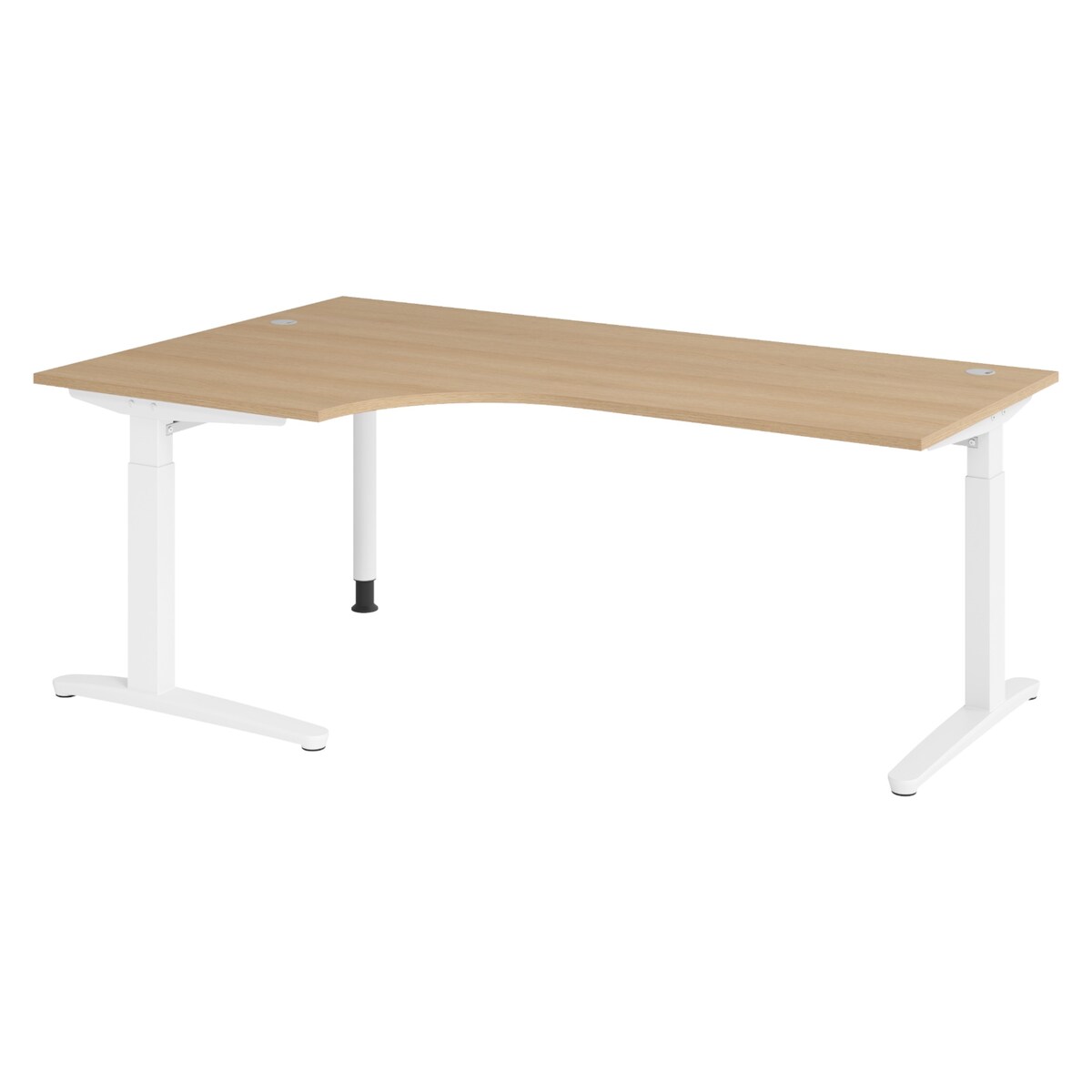 bümö Eckschreibtisch höhenverstellbar 200x120 cm in Eiche, Metallgestell in weiß - Schreibtisch groß, Bürotisch höhenverstellbarer, Büroschreibtisch