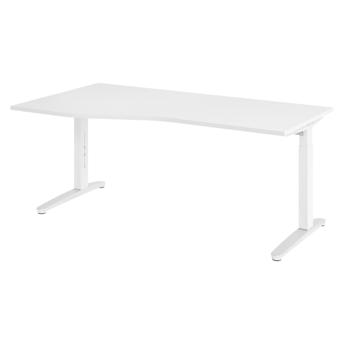 bümö Schreibtisch höhenverstellbar 180x100 cm in weiß, Metallgestell in weiß/alu - Bürotisch groß, höhenverstellbarer Büroschreibtisch, Computertisch
