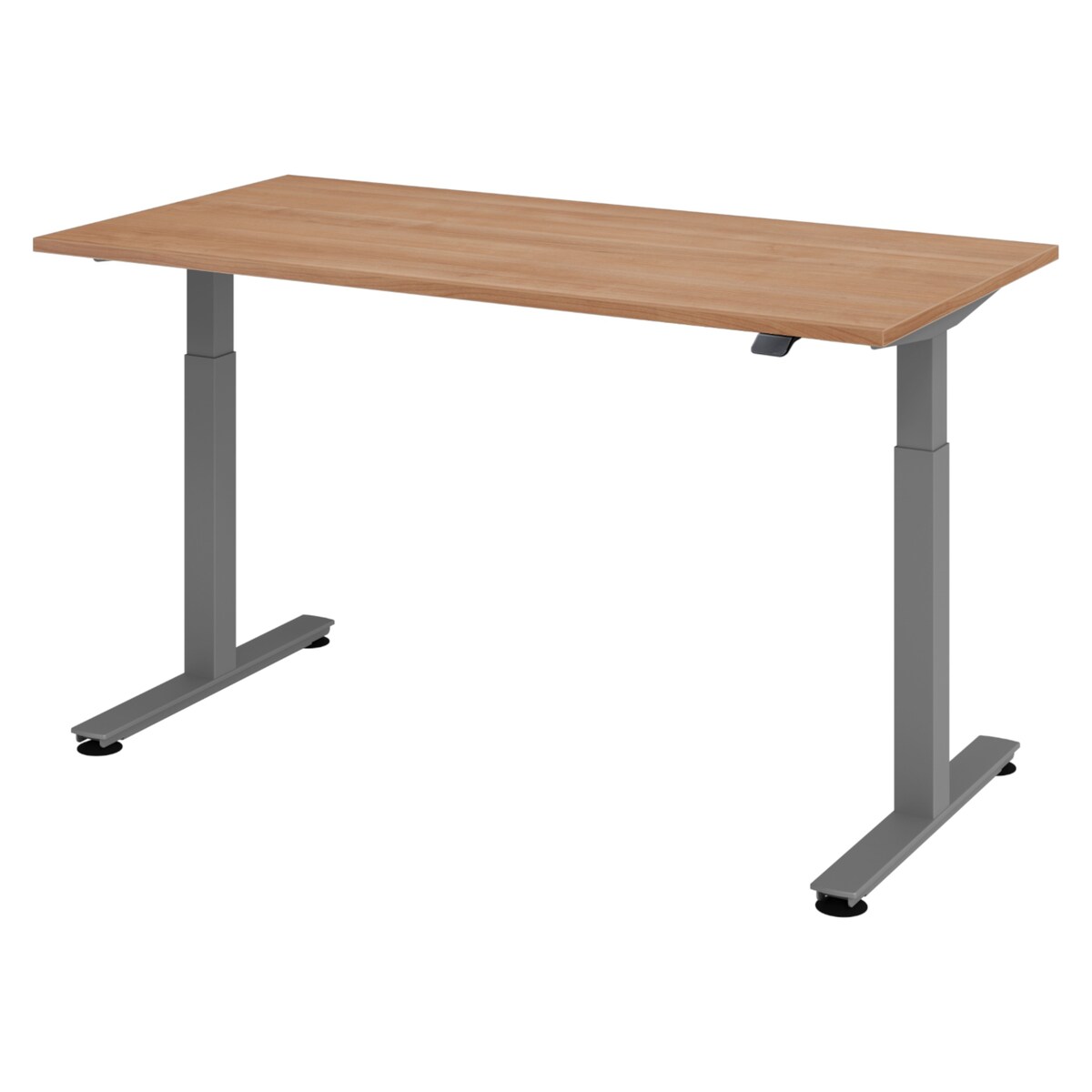 bümö elektrisch höhenverstellbarer Schreibtisch Nussbaum 160x80 cm, Gestell: Graphit - Büroschreibtisch höhenverstellbar elektrisch, elektrischer