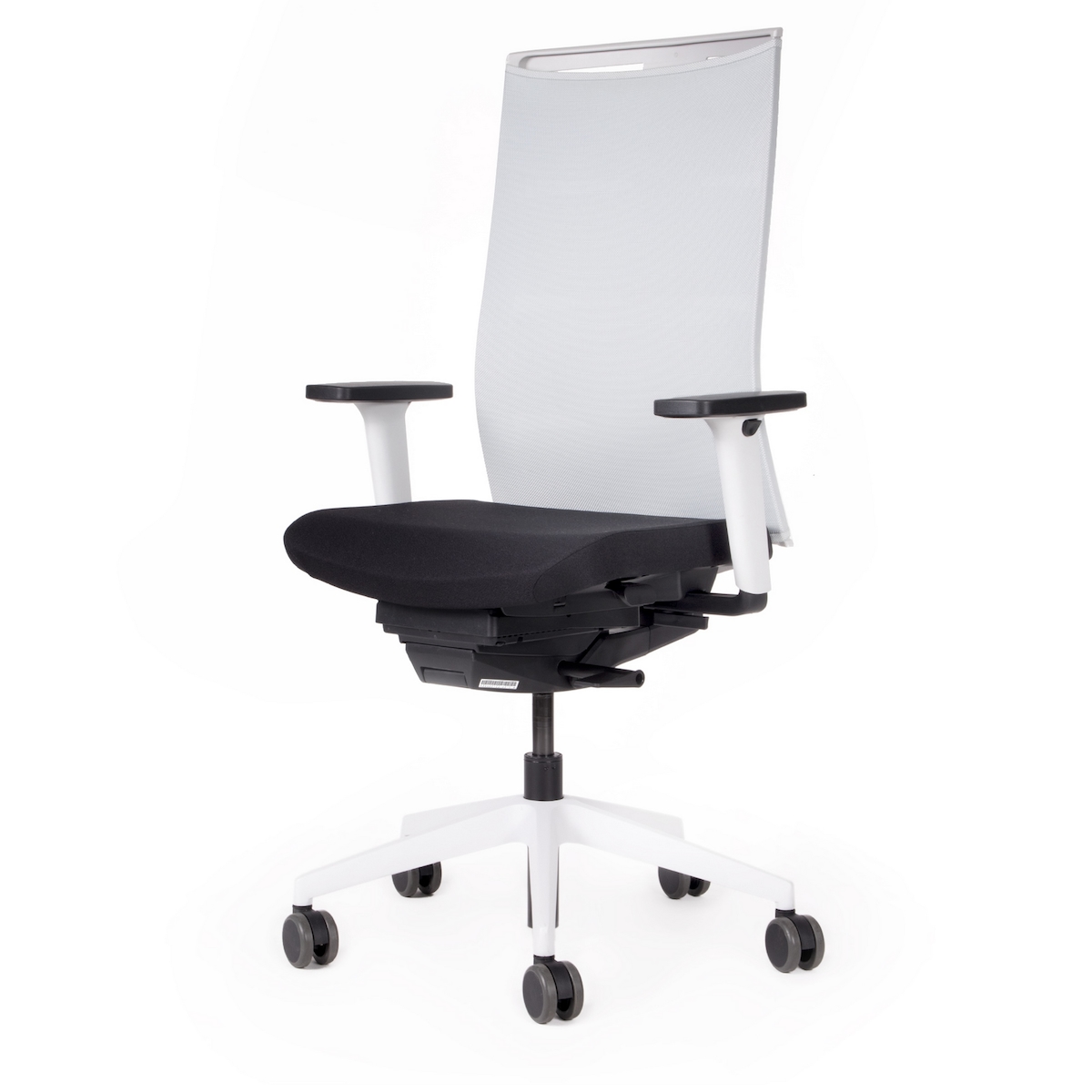 bümö SitzMeister Bürostuhl ergonomisch, Stoff & Netzbezug in weiß/schwarz - Ergonomischer Drehstuhl mit Rollen, Stuhl mit Armlehne, Synchronmechanik