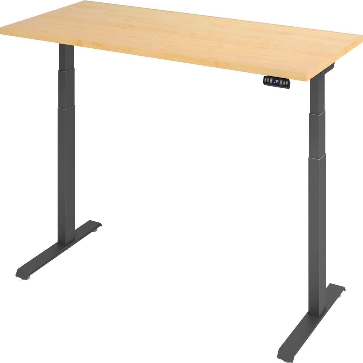 bümö elektrisch höhenverstellbarer Schreibtisch 180x80 cm in Ahorn, Gestell graphit mit Memory-Steuerung, elektrischer Bürotisch höhenverstellbar