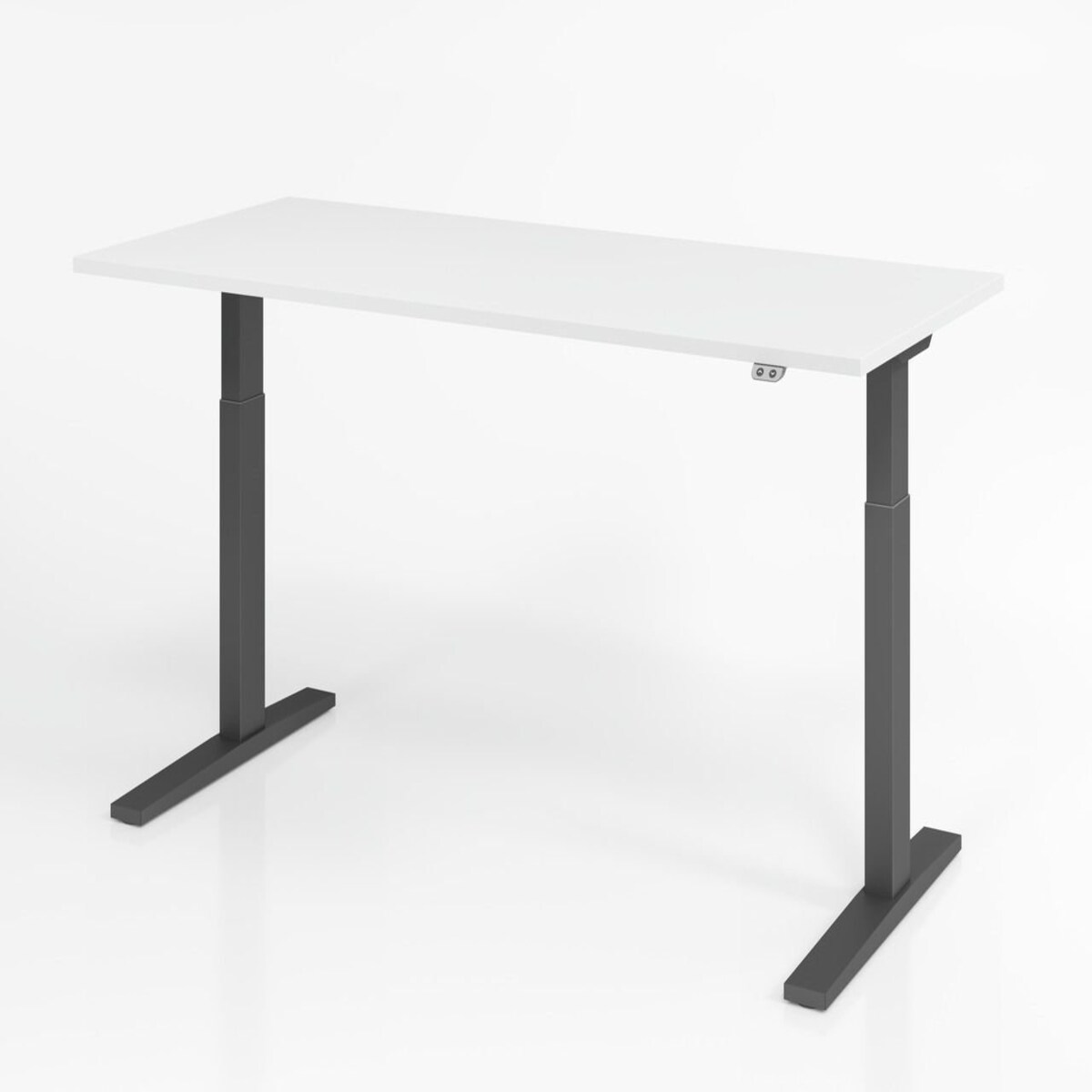 bümö Schreibtisch höhenverstellbar 180x100 cm in weiß, Metallgestell in graphit - Bürotisch groß, höhenverstellbarer Büroschreibtisch, Computertisch