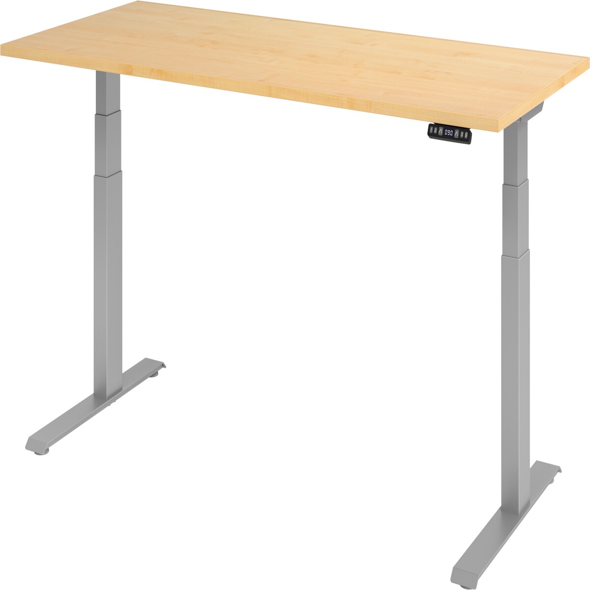 bümö elektrisch höhenverstellbarer Schreibtisch 160x80 cm in Ahorn, Gestell silber mit Memory-Steuerung, elektrischer Bürotisch höhenverstellbar