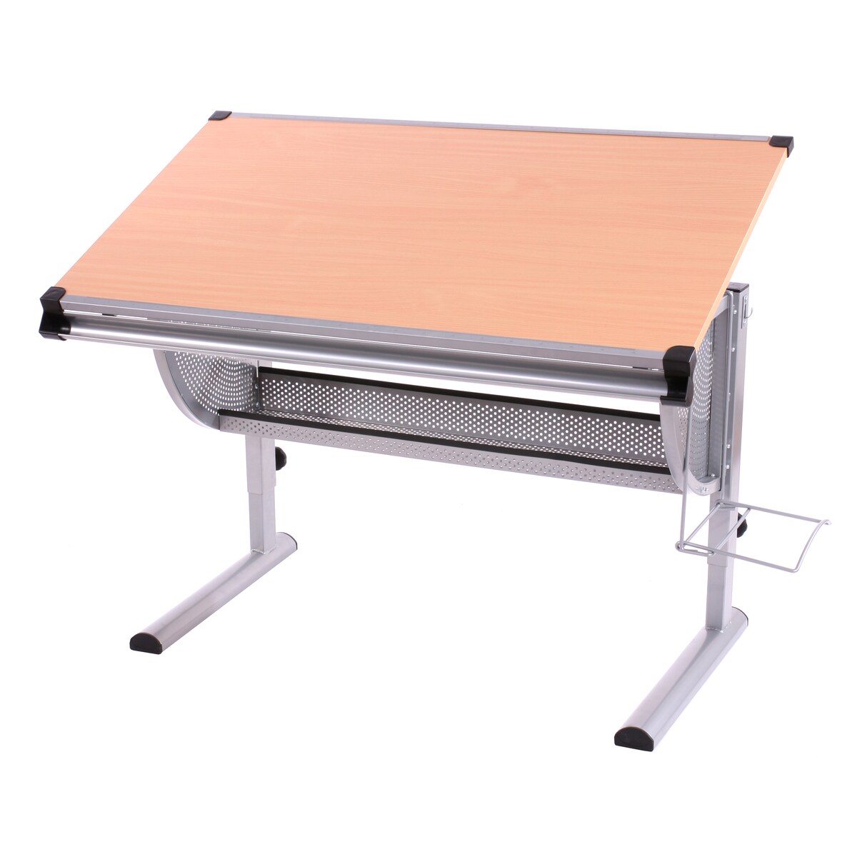 Mendler Schreibtisch Bürotisch Oxford, höhenverstellbar, neigbar ~ natur, Buche