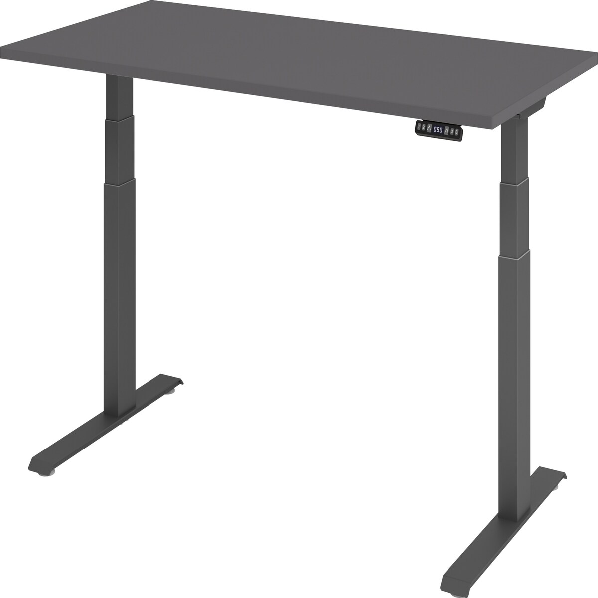 bümö elektrisch höhenverstellbarer Schreibtisch 160x80 cm in graphit, Gestell graphit mit Memory-Steuerung, elektrischer Bürotisch höhenverstellbar