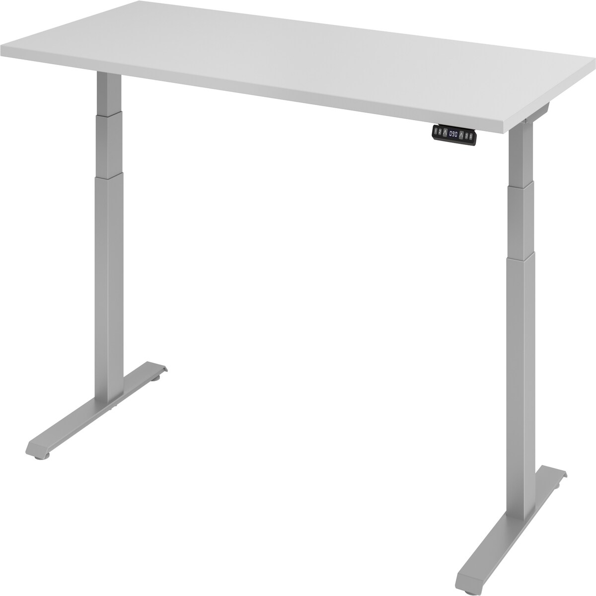 bümö elektrisch höhenverstellbarer Schreibtisch 180x80 cm in grau, Gestell silber mit Memory-Steuerung, elektrischer Bürotisch höhenverstellbar