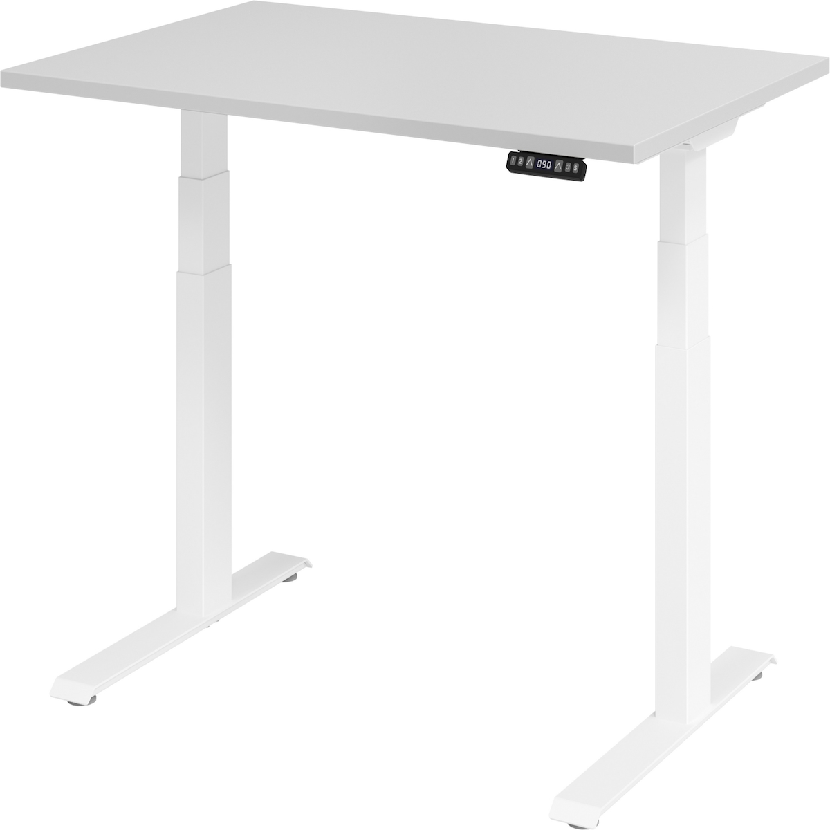 bümö elektrisch höhenverstellbarer Schreibtisch 120x80 cm in grau, Gestell weiß mit Memory-Steuerung, elektrischer Bürotisch höhenverstellbar Gaming
