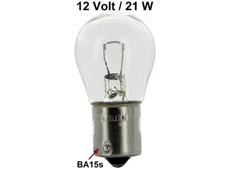 Glühlampe 12 Volt, 21 Watt. Blinker vorne, hinten, Bremslicht hinten, Sockel BA15s.