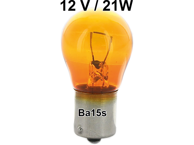 Glühlampe 12 Volt, 21 Watt. Sockel Ba15s , gelb eingefärbt, für weiße Blinkergläser!