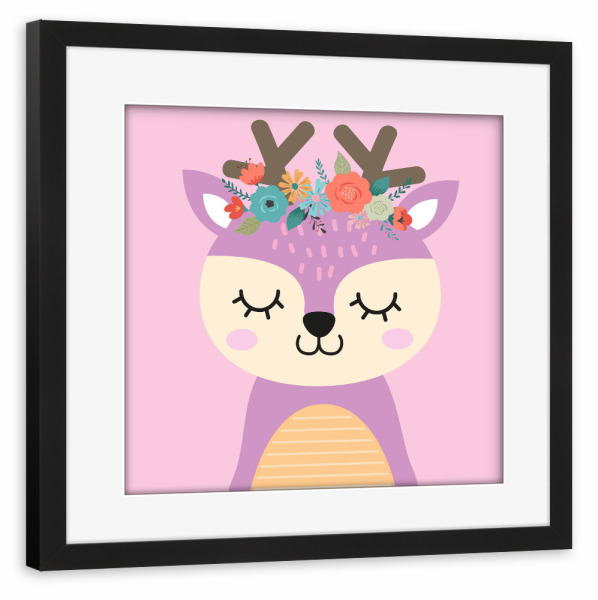 Poster mit Rahmen schwarz "KIDS art Reh FRIDA" artboxONE - Für Kinder,Tiere - Kinderzimmer,Babyzimmer,Junge,Mädchen,Tiere,Wandbilder,Deko,Baby,Frida