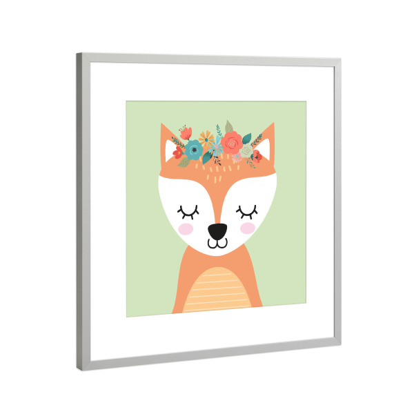 Poster mit Rahmen Silber "KIDS art Fuchs FRIDA" artboxONE - Für Kinder,Tiere - Kinderzimmer,Babyzimmer,Junge,Mädchen,Tiere,Wandbilder,Deko,Baby,Frida