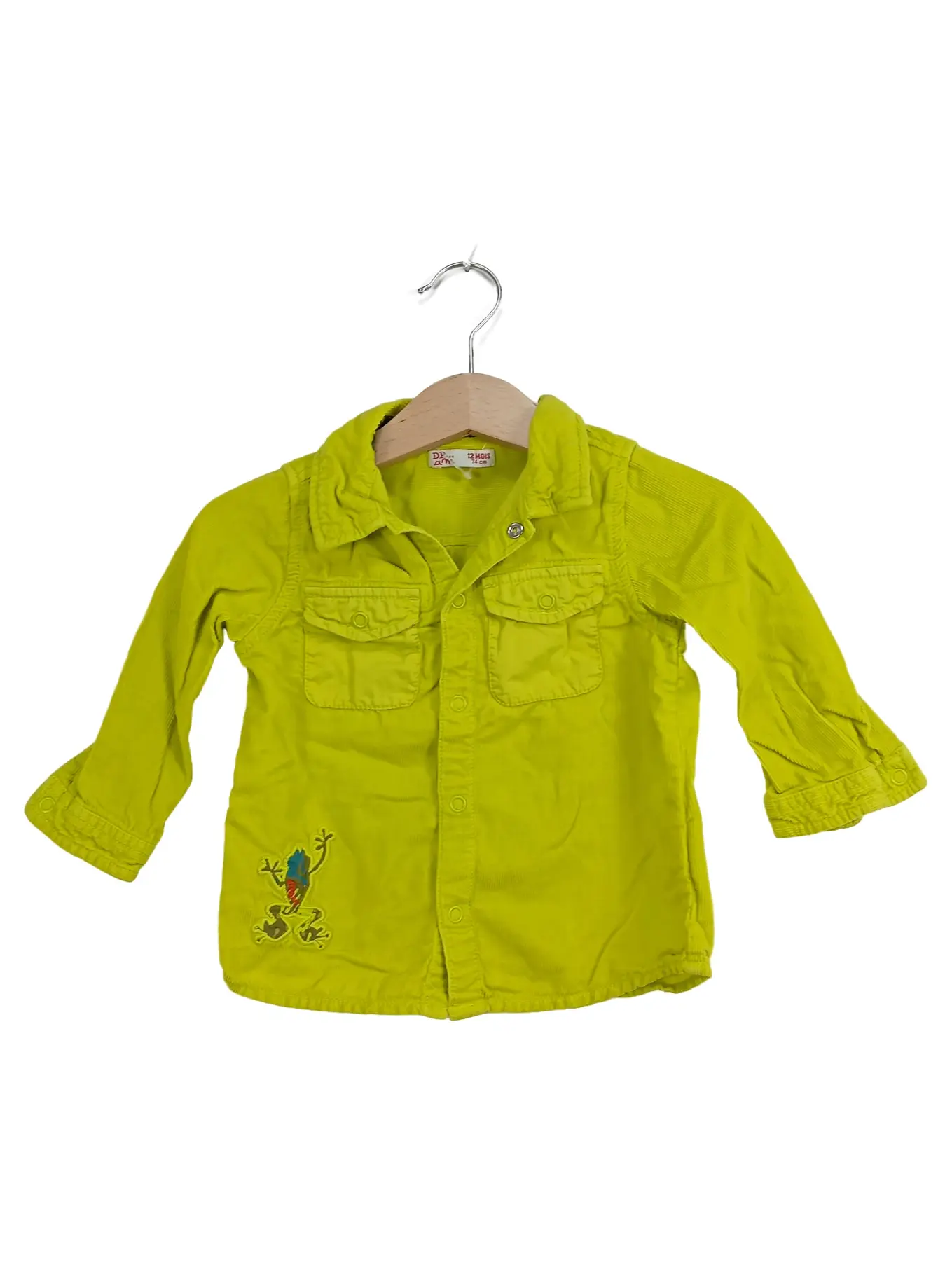 MARKENLOS DPAM Baby Hemd Gr. 74 Gelb Frosch Applikation Langarm Baumwolle