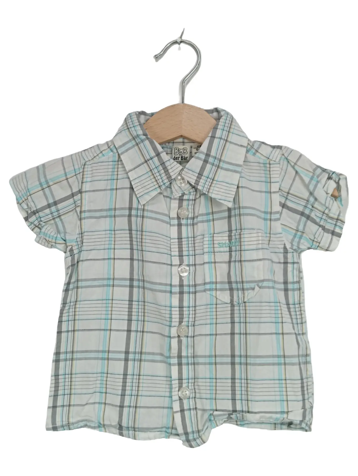 BOB DER BÄR Baby Hemd Gr. 68 kariert kurzarm weiß türkis Baumwolle