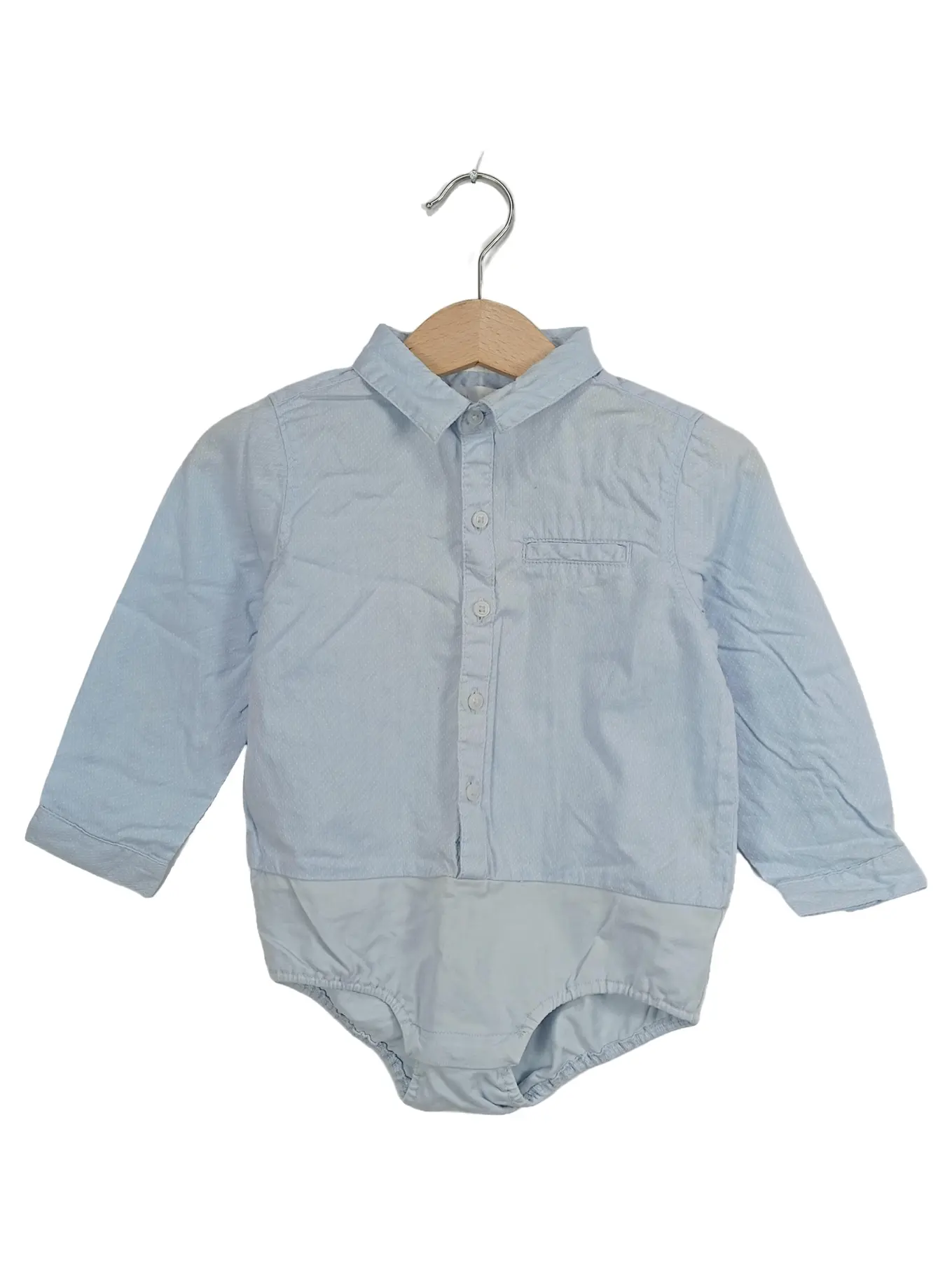 ZARA Baby Body Hemdbody Langarm Gr. 86 Blau Gepunktet Baumwolle Hemd Strampler