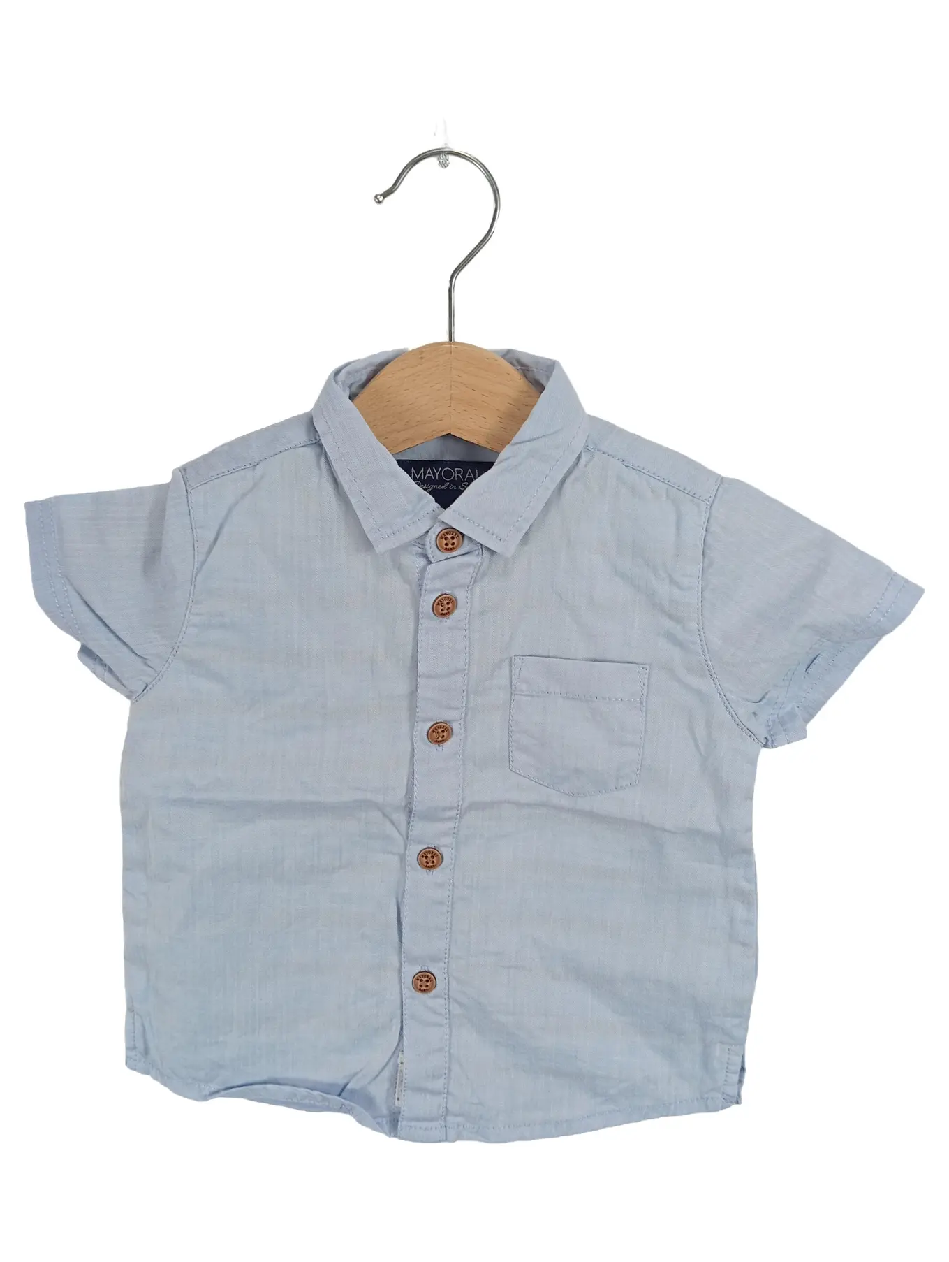 MAYORAL Kurzarm Hemd Baby Junge Gr. 68 Hellblau Baumwolle