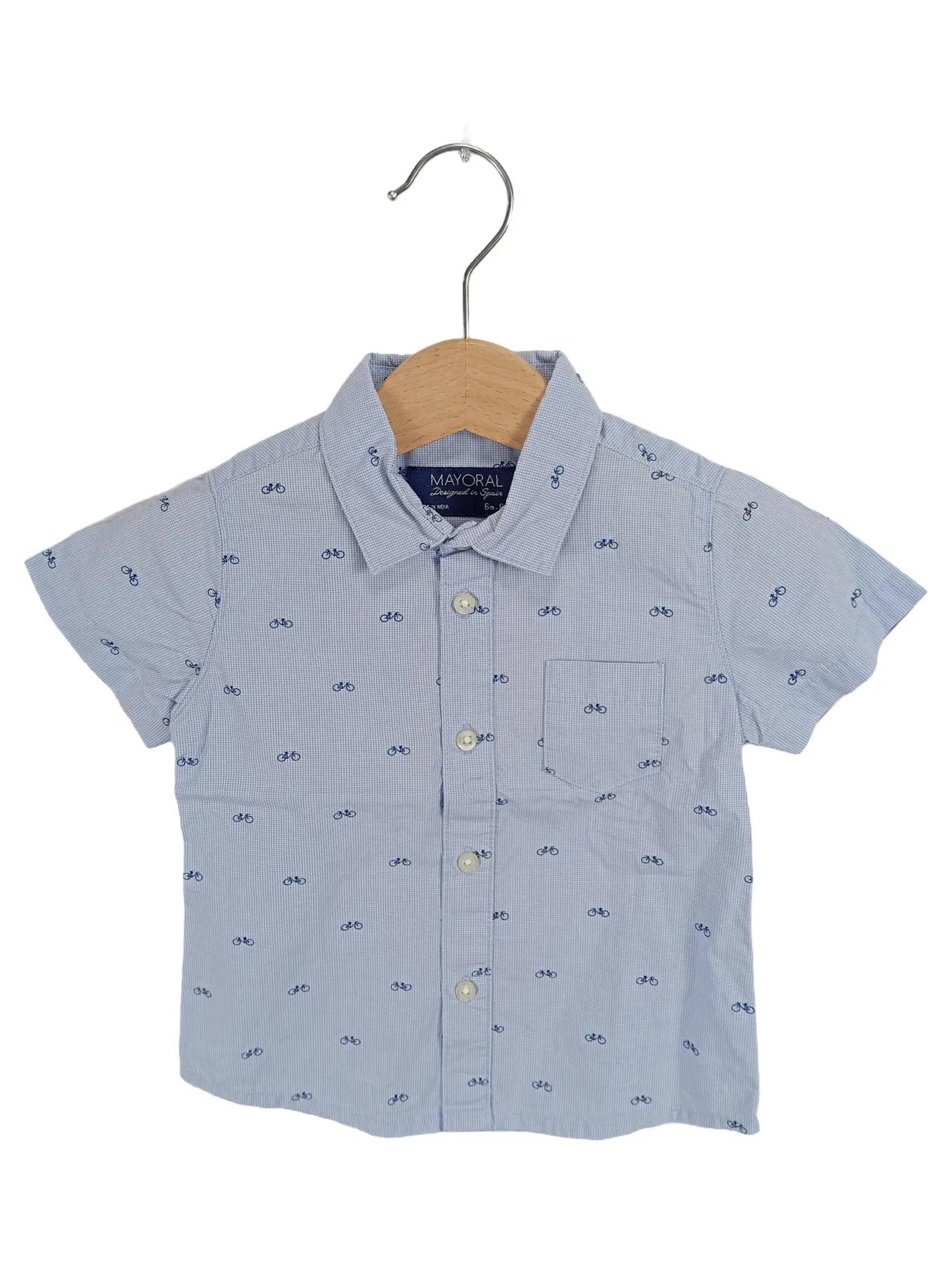 MAYORAL Hemd Kurzarm Jungen 68 Blau Fahrradmuster Slim Fit Baby
