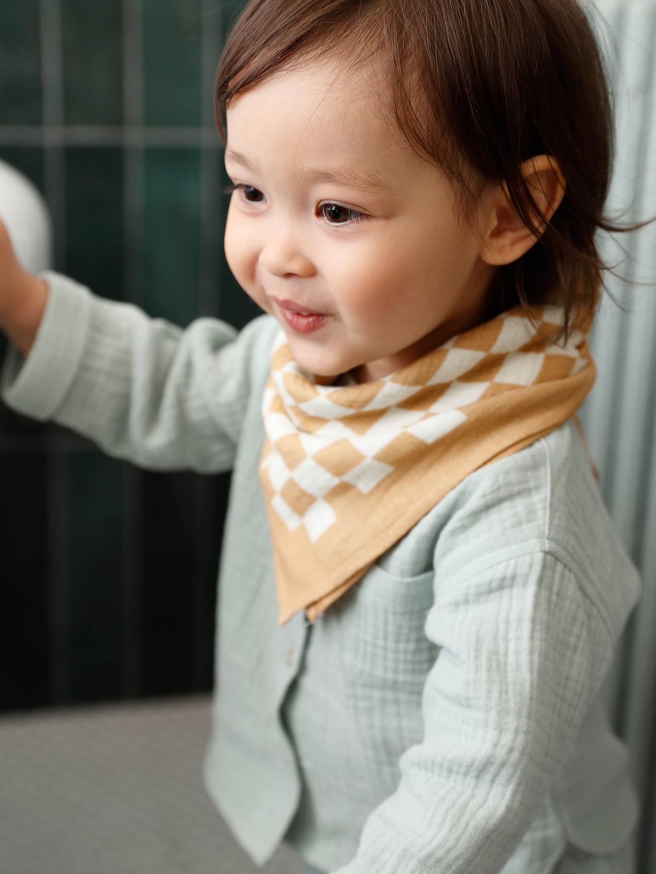 Baby Hemd mit Stehkragen aus Musselin, personalisierbar grün Gr. 92/98 von vertbaudet