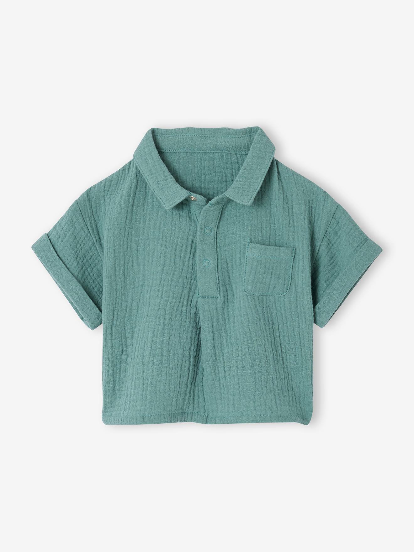 Baby Kurzarm-Hemd aus Musselin mit Brusttasche smaragdgrün Gr. 80 von vertbaudet