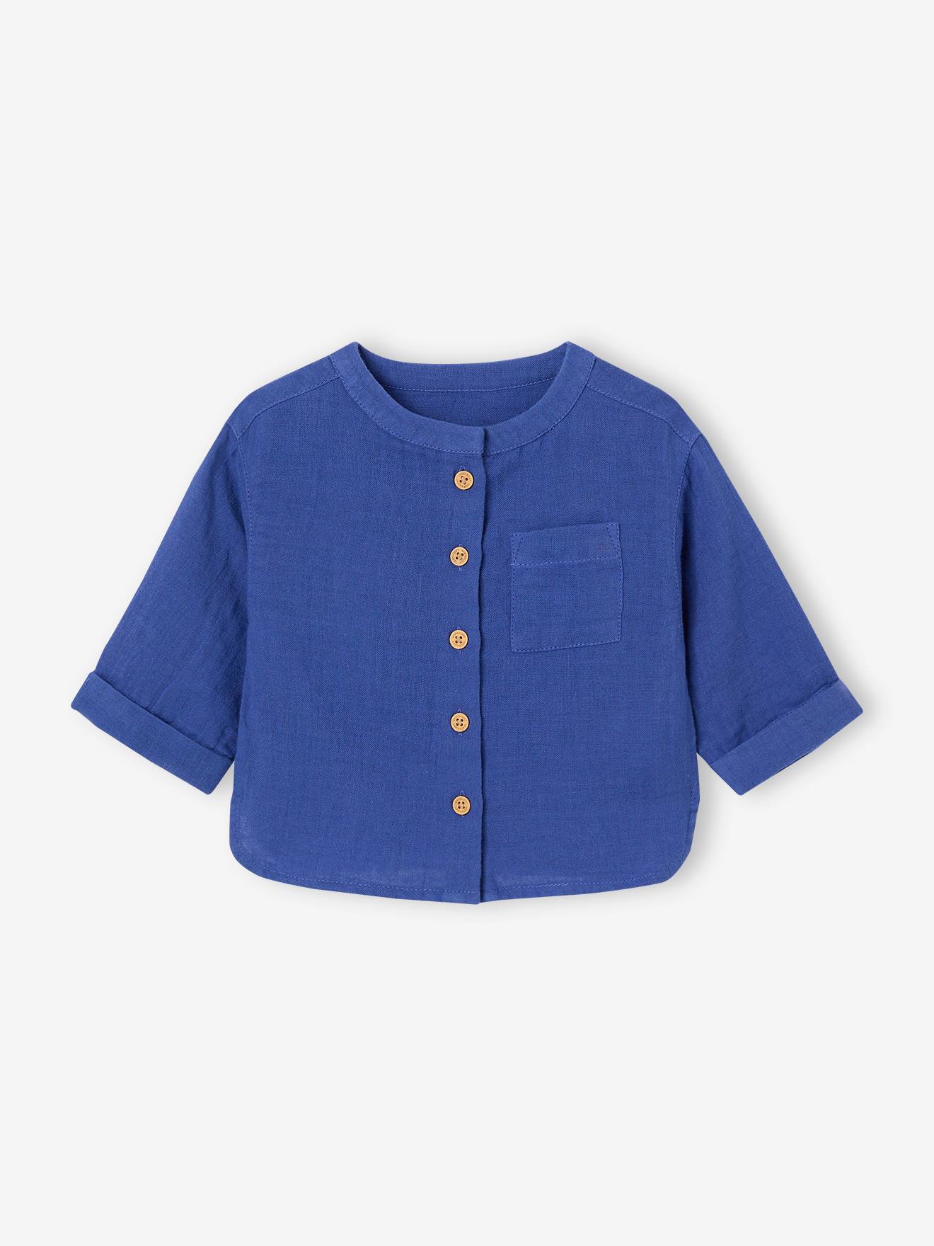 Baby Hemd mit Stehkragen aus Musselin, personalisierbar elektrisch blau Gr. 71 von vertbaudet