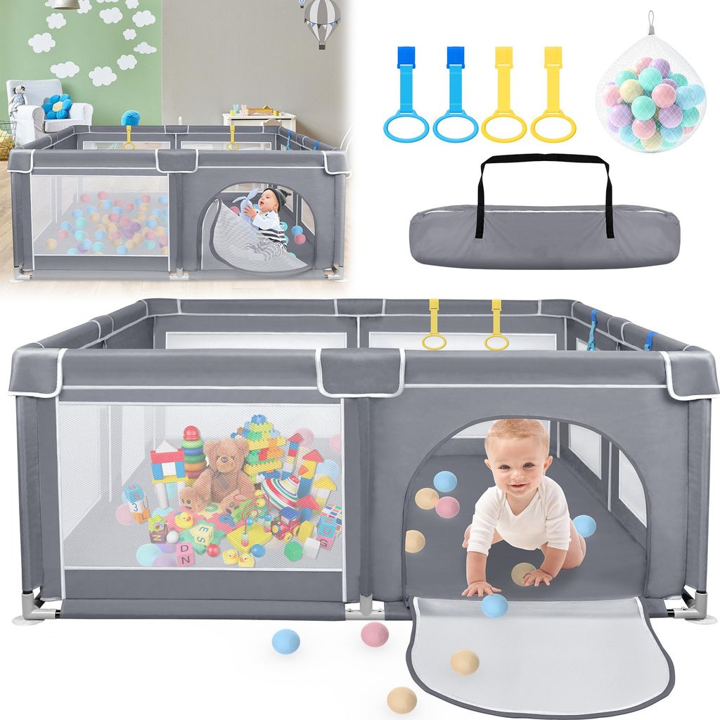 XINZI Baby Laufgitter Laufstall Schutzgitter 180x200 cm Laufgitter Bällebad Baby Playpen Aktivitätszentrum Absperrgitter Schutzgitter, Grau mit A...
