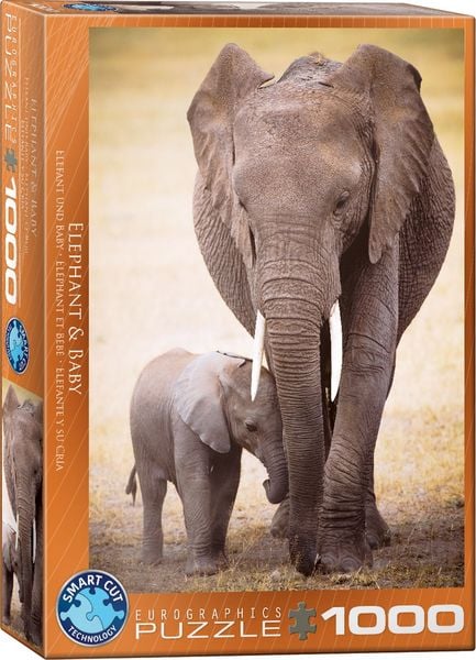 1000 Teile Puzzle - Puzzle - Elefantenmutter mit Baby + DeLuxe 3er Set Puzzle Zubehör
