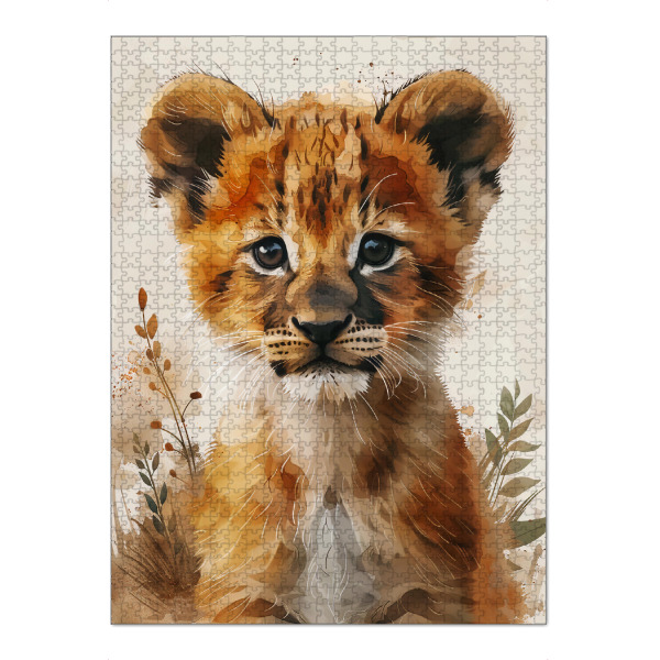 Puzzle Ravensburger "Baby Lion 2 (matart)" artboxONE - Für Kinder,Tiere - Löwe,Löwen,Tier,Tiere,Natur,Baby,Niedlich,Wild,Tierwelt,Malerei,Aquarell