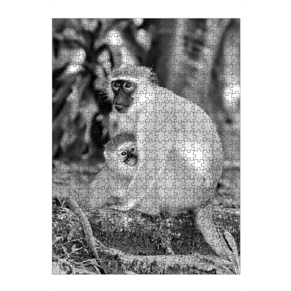 Puzzle Ravensburger "Mutter und Baby Vevet Monkey sw 728" artboxONE - Natur,Tiere,Schwarzweiß,Reise / Afrika