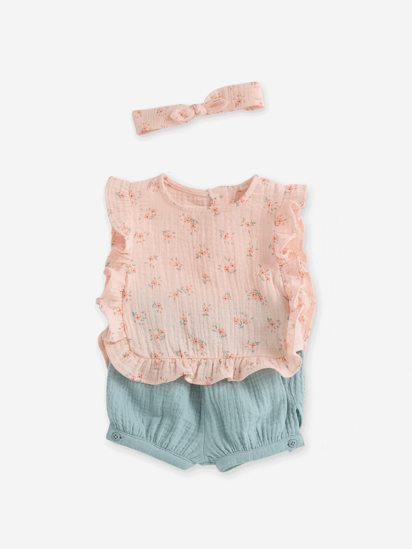 Mädchen Baby-Set: Bluse, Shorts & Haarband aus Musselin rosa Gr. 74 von vertbaudet