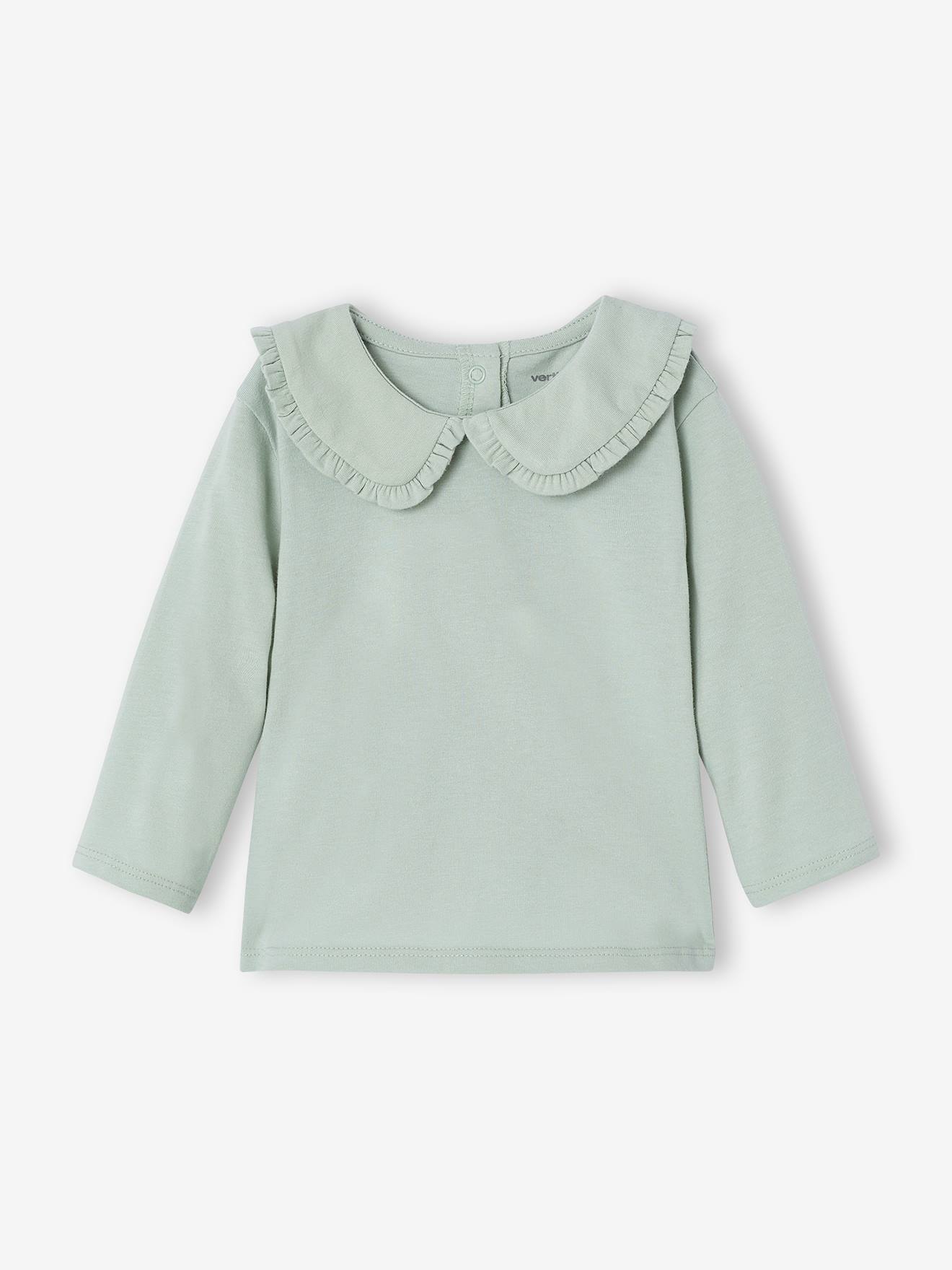 Mädchen Baby Shirt, Bubikragen mit Rüschen, personalisierbar aqua Gr. 80 von vertbaudet