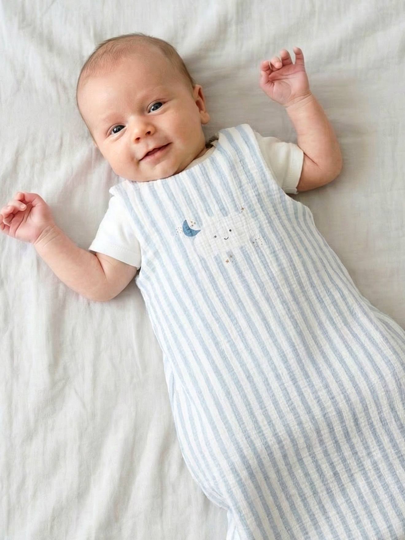 Baby-Schlafsack, Musselin, Schlafsack, atmungsaktive Baumwolle, für den Sommer, 0–6 Monate, Blau, Tog 1,0
