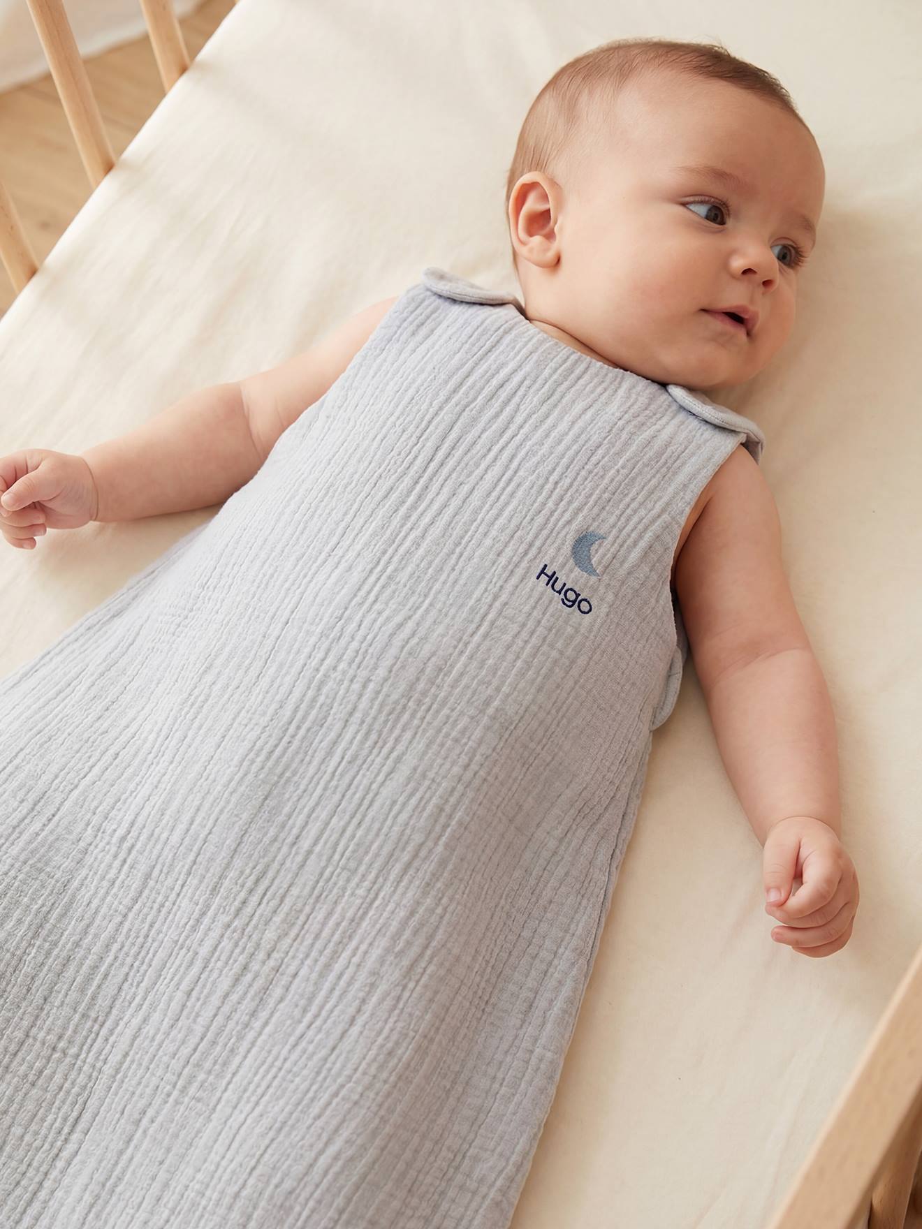Bio-Kollektion: Baby Sommerschlafsack aus Musselin, personalisierbar graublau Gr. 104 cm von vertbaudet
