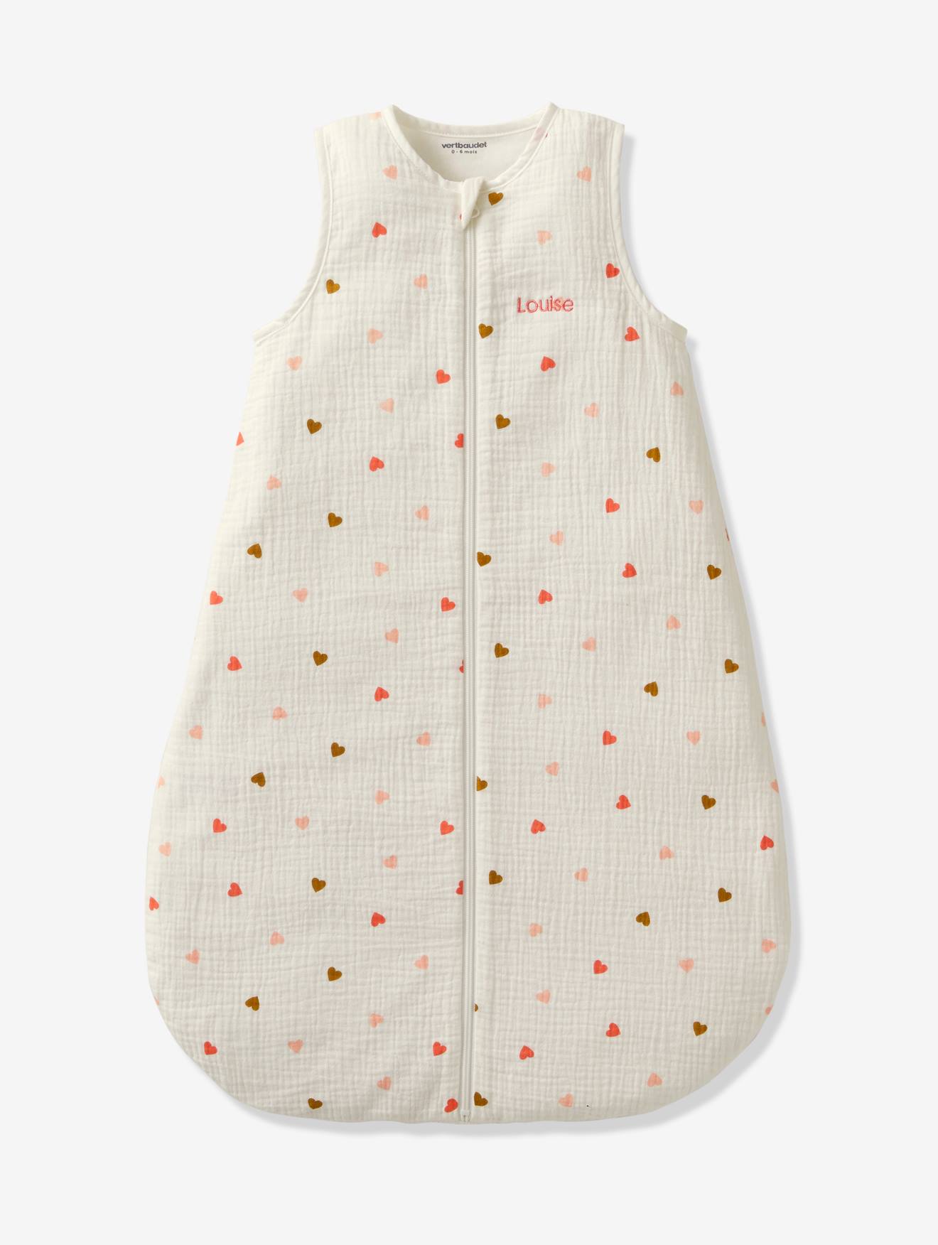 Baby Sommerschlafsack KLEINE HERZEN aus Musselin personalisierbar wollweiß herzen Gr. 68 cm von vertbaudet