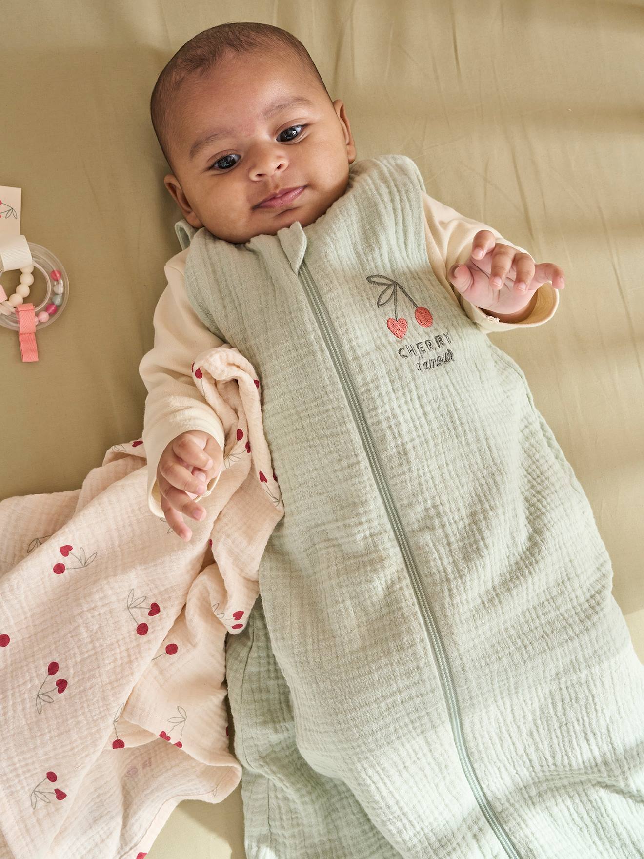 Baby Sommerschlafsack CHERRY mit Reißverschluss salbeigrün Gr. 104 cm von vertbaudet