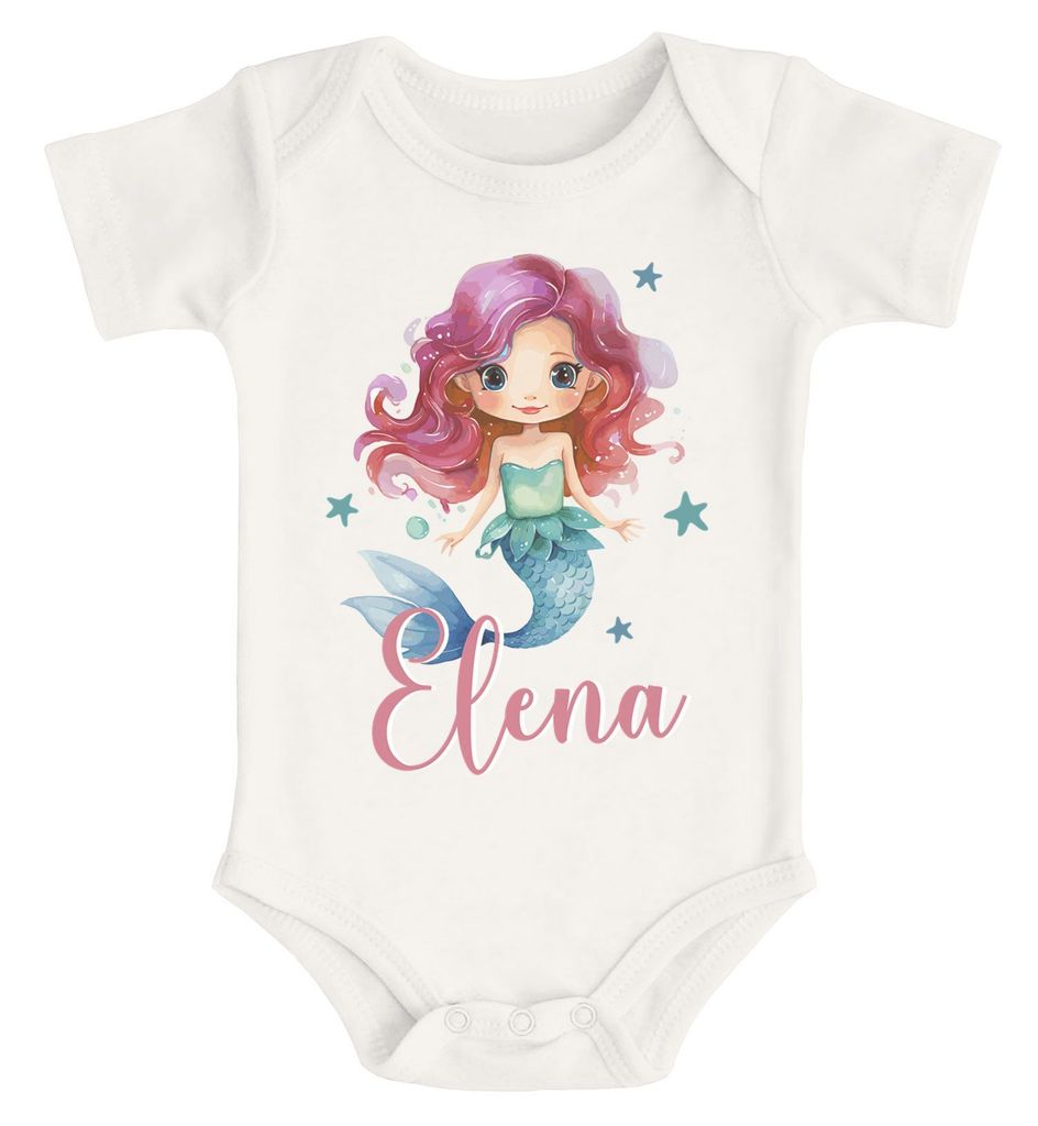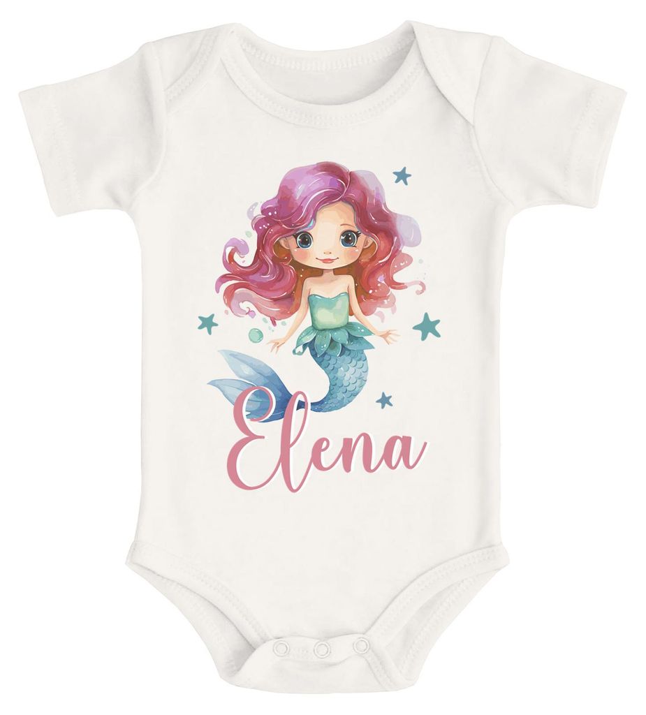 Baby Body mit Namen bedrucken lassen Meerjungfrau Babygeschenke personalisiert kurzarm Baumwolle SpecialMe weiß 3-6 Monate