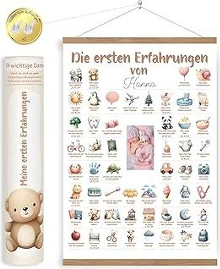 Poster Meine Ersten Mal, zur Verfolgung der Meilensteine Ihres Babys, Individuell Gestaltbar mit Daten, Babygeschenke, Dekoration für das Babyzimm...