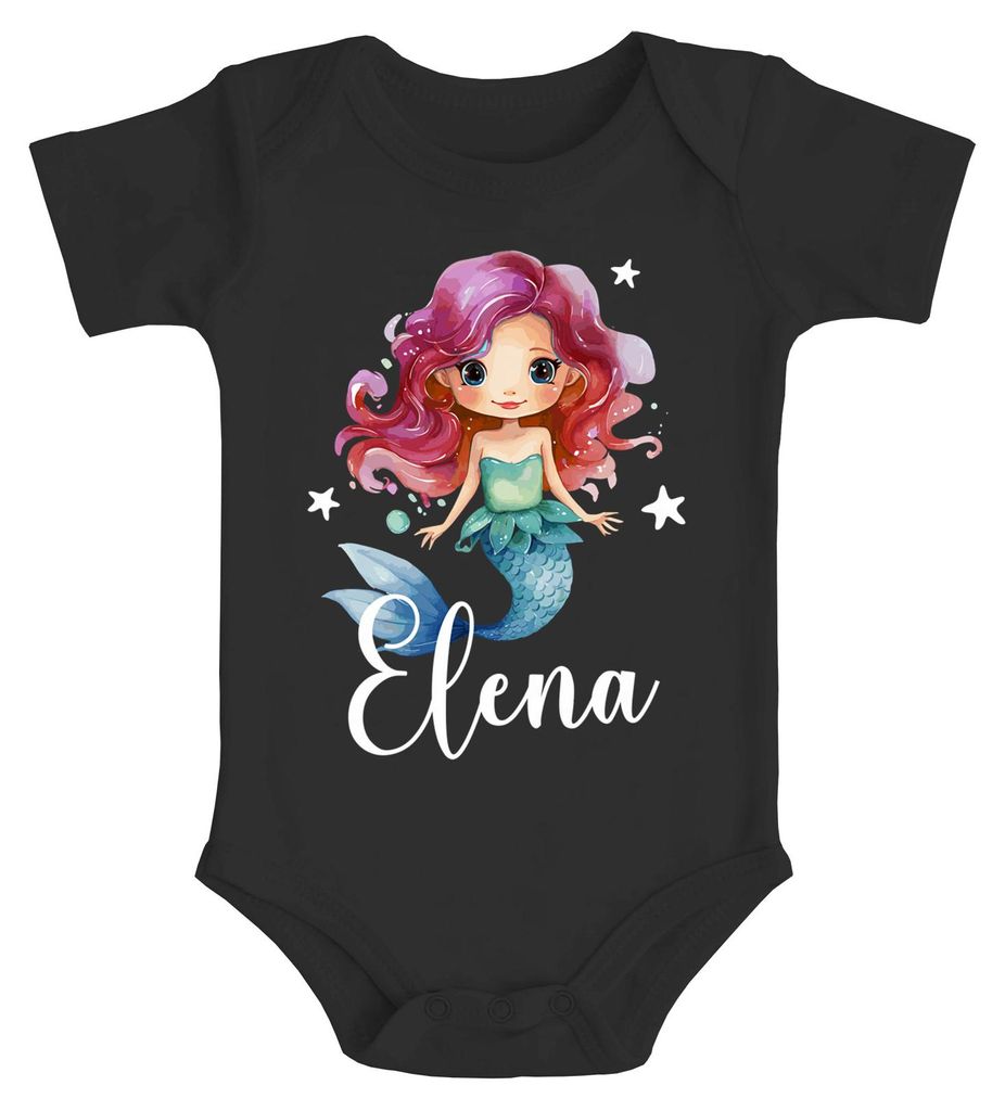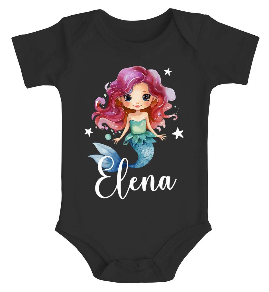 Baby Body mit Namen bedrucken lassen Meerjungfrau Babygeschenke personalisiert kurzarm Baumwolle SpecialMe schwarz 0-3 Monate