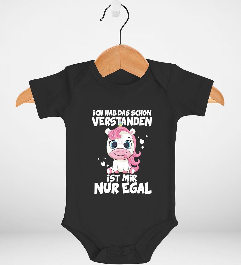 Baby Body Einhorn mit Spruch Ich hab das schon verstanden ist mir nur egal Baumwolle lustige Babygeschenke MoonWorks schwarz 0-3 Monate