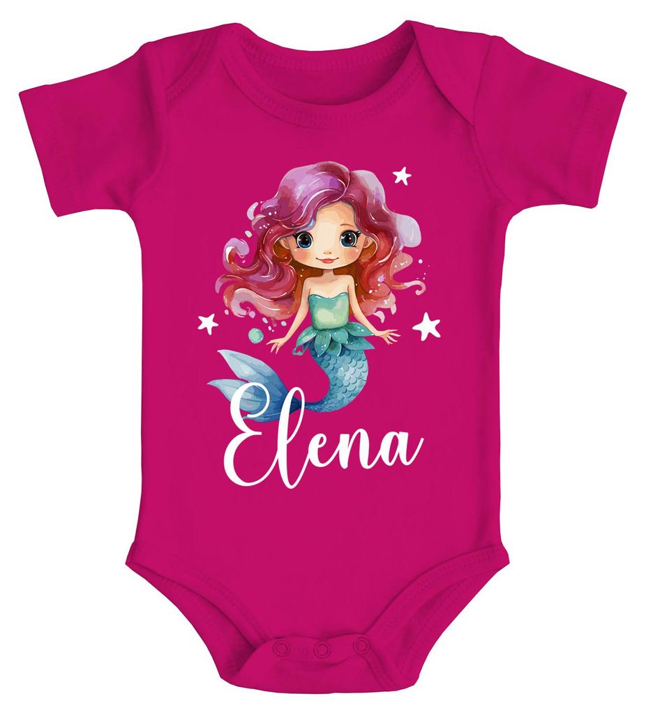 Baby Body mit Namen bedrucken lassen Meerjungfrau Babygeschenke personalisiert kurzarm Baumwolle SpecialMe pink 3-6 Monate