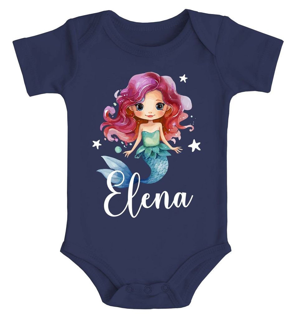 Baby Body mit Namen bedrucken lassen Meerjungfrau Babygeschenke personalisiert kurzarm Baumwolle SpecialMe navy 0-3 Monate