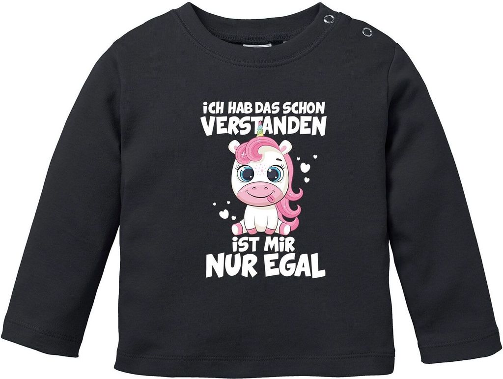 Baby Langarmshirt Einhorn mit Spruch Ich hab das schon verstanden ist mir nur egal Baumwolle lustige Babygeschenke MoonWorks schwarz 68/74 (4-9 M...