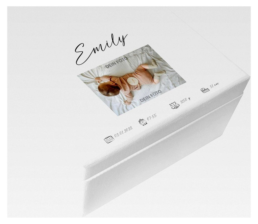Weiße Foto-Erinnerungsbox aus Holz für Babygeschenke | zur Geburt & Taufe | individuelles Bild | persönliche Geschenkidee für Mädchen und Jung...