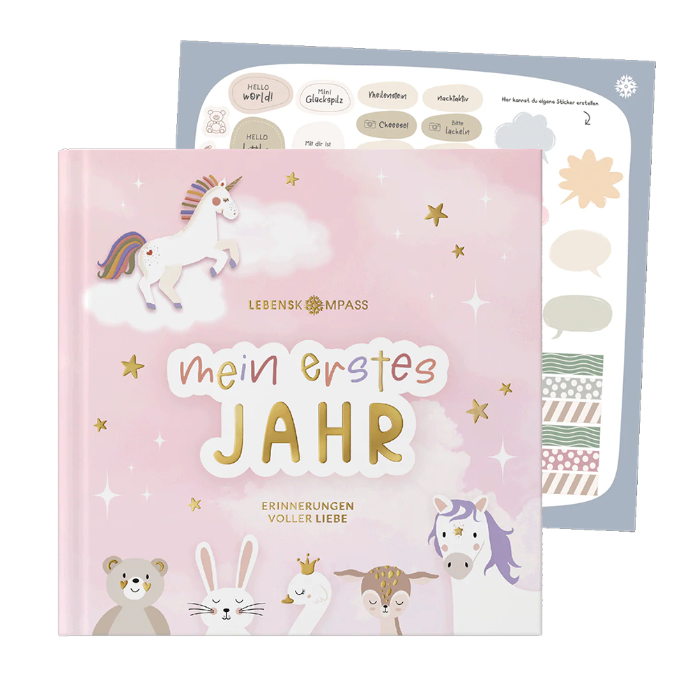 Babytagebuch Einhorn - Baby Erinnerungsalbum "Mein erstes Jahr" zum Eintragen, Einkleben & Selbstgestalten von Lebenskompass