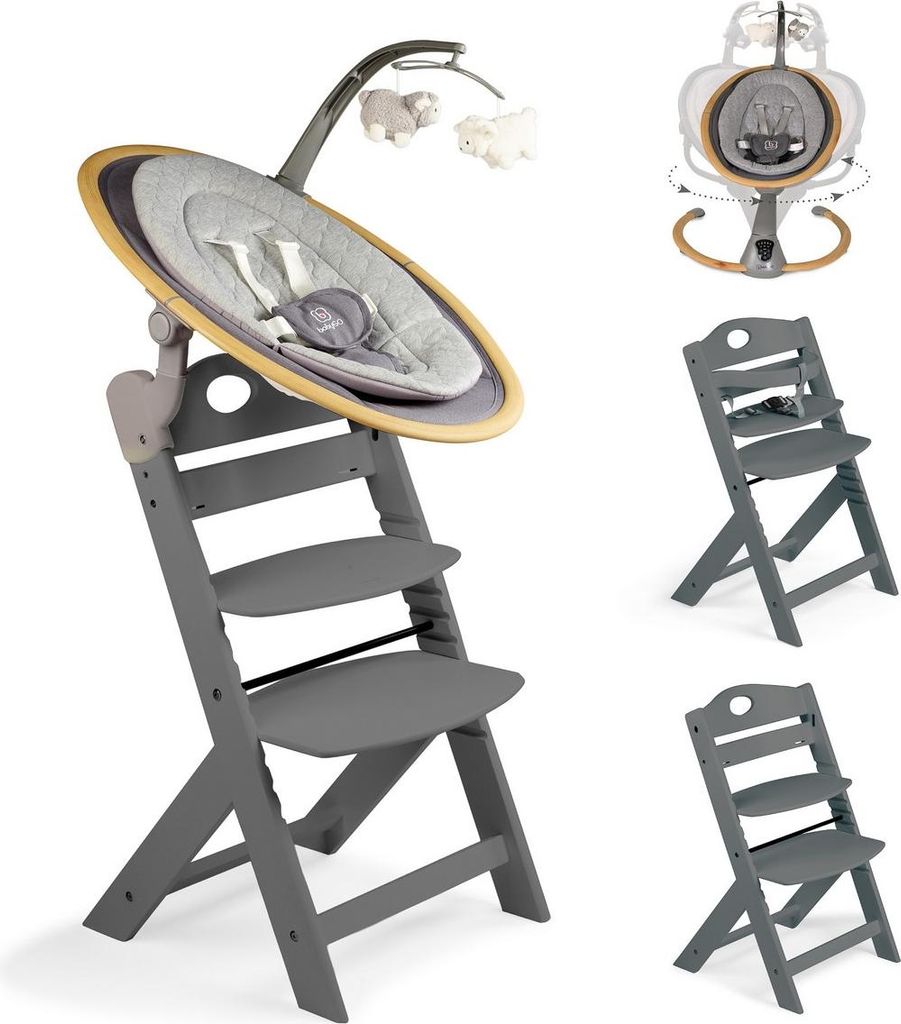 BabyGo Homey Set Hochstuhl Family mit Babywippe wood/ grey