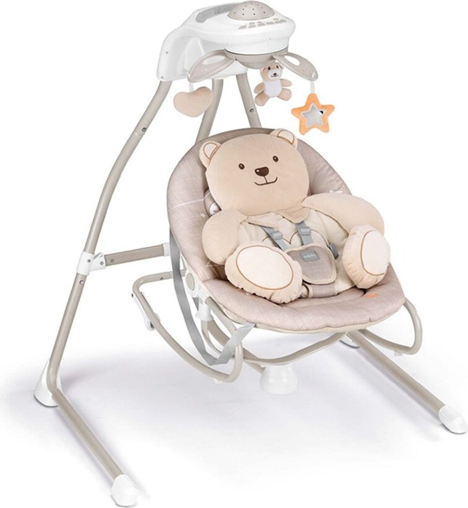 Chipolino Babywippe Nest Musik, Fernbedienung, Kissen, Gurt, Timer, Plüschtiere beige