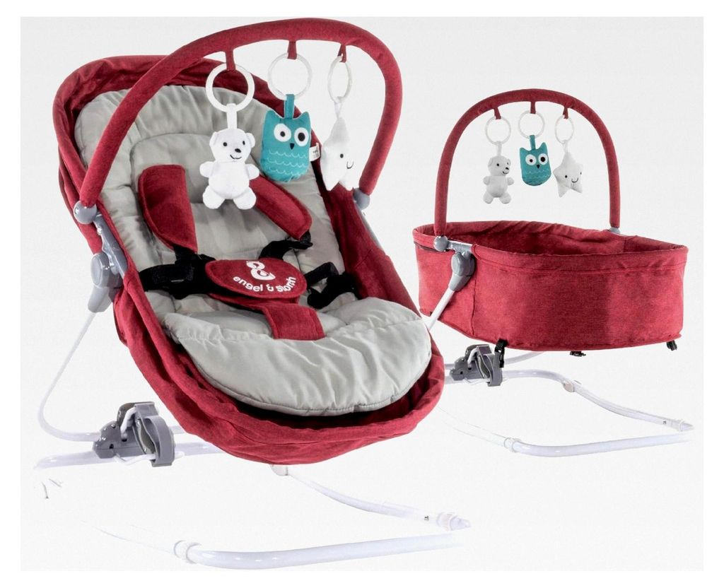 Babywippe VIGO Baby Schaukelstuhl mit abnehmbarem Bezug und Spielebogen - Rot + Grau