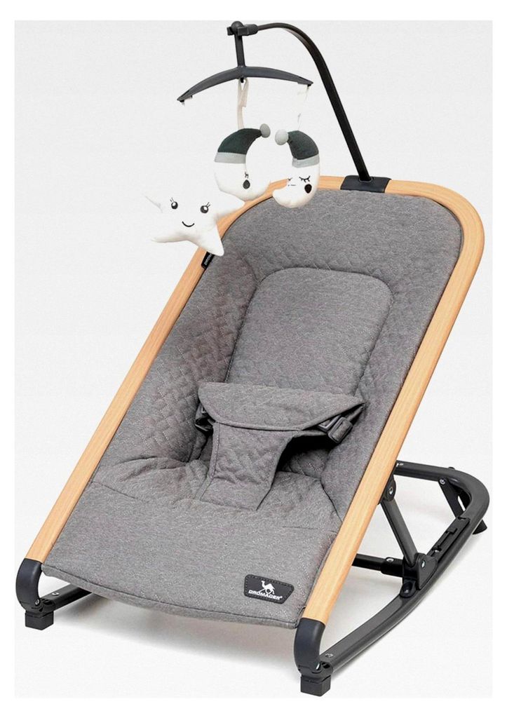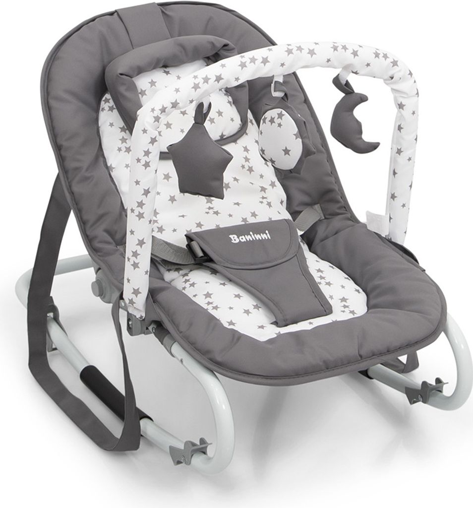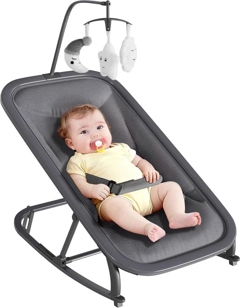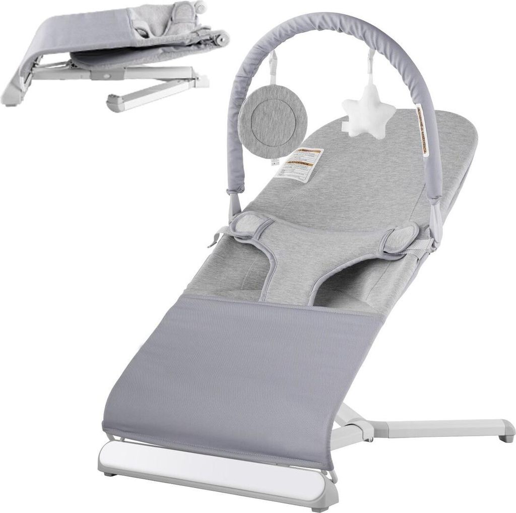 Babywippe VIGO Baby Schaukelstuhl mit abnehmbarem Bezug und Spielebogen - Grau + Grau