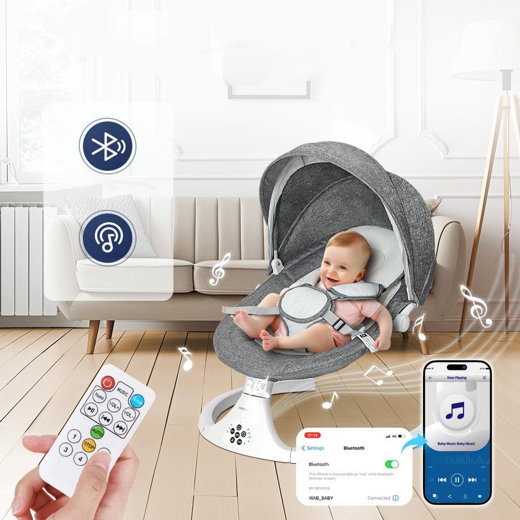 Babywippe Babyschaukel - 5 Gang Fernbedienung - Bluetooth Lieder - mit Kissen - Ideal für Neugeborene und Kleinkinder