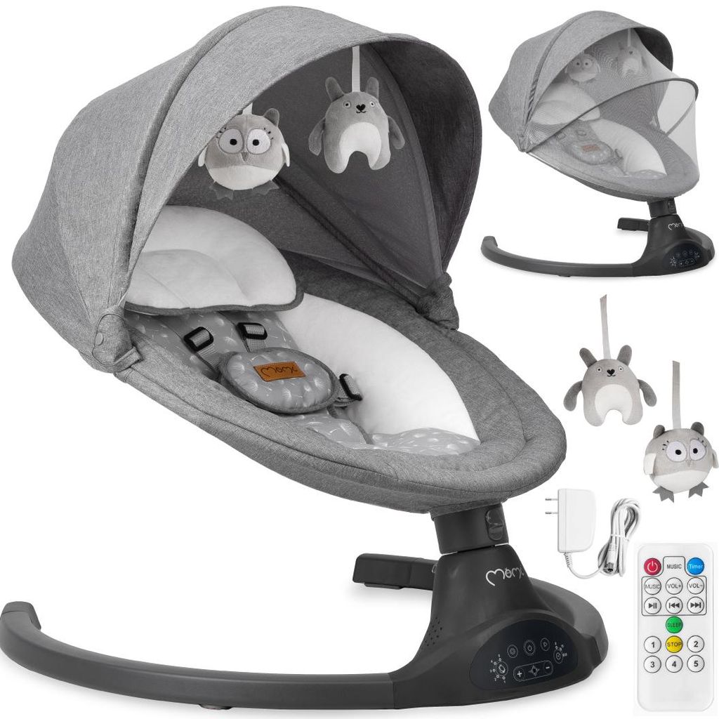 MoMi KENANI – Elektrische Babywippe mit Bluetooth, Fernbedienung & Musik, 5 Stufen – inkl. Moskitonetz – Dunkelgrau