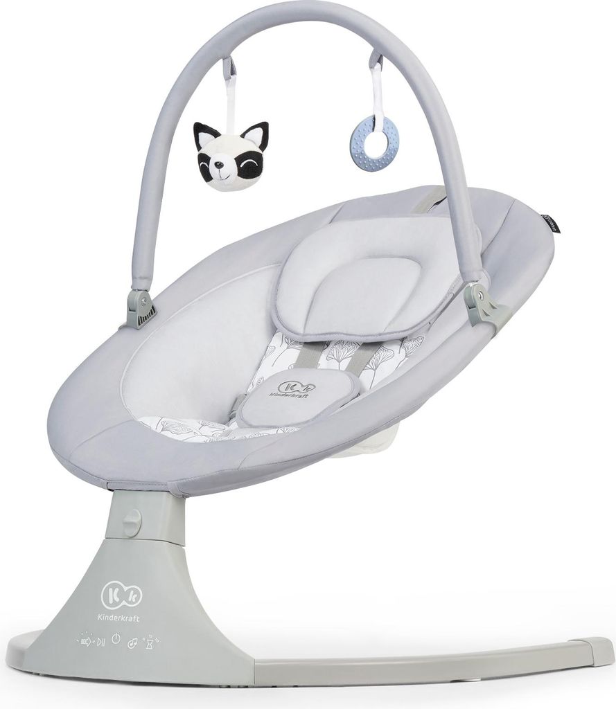 Kinderkraft TULSY Elektrischer Babywippe & Liege – 5 Schaukelgeschwindigkeiten, Bluetooth, Grau