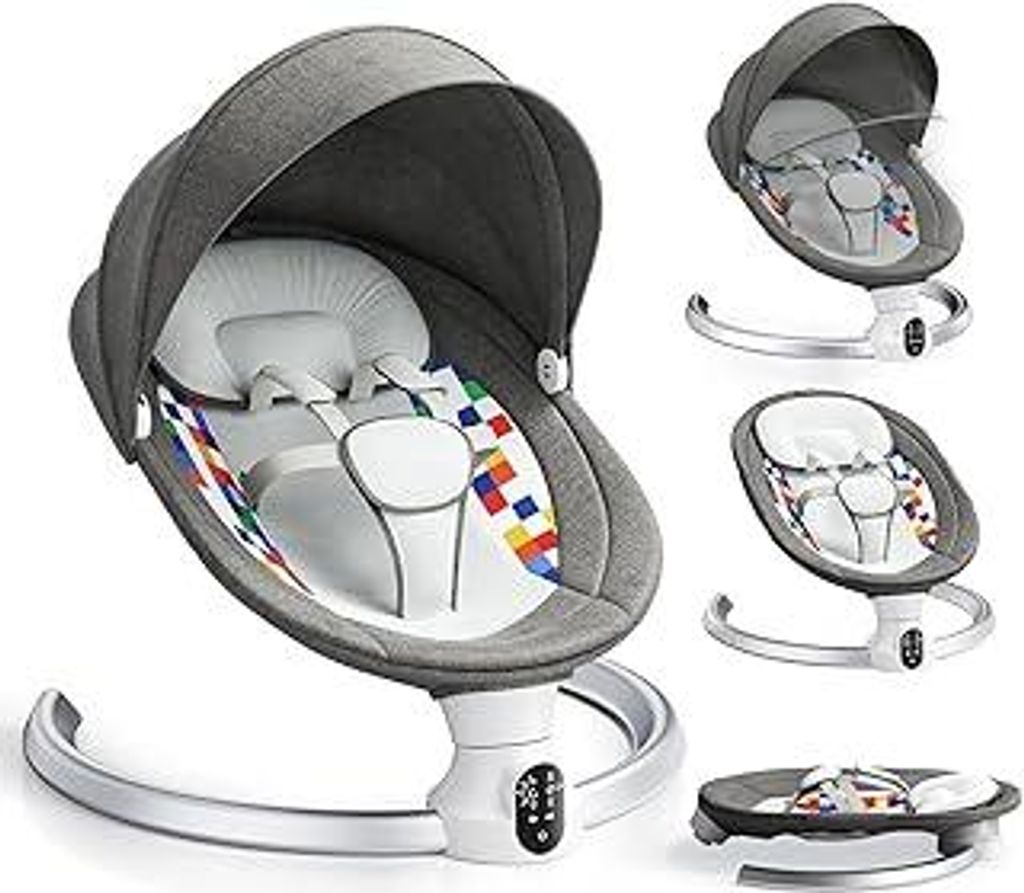Bluetooth Elektrische Babyschaukel, Upgrade 5-Punkte Geschirr Elektrische Babywippe mit 5 Geschwindigkeiten 3 Timer und 10 Musik, Mobiler APP/Fernb...